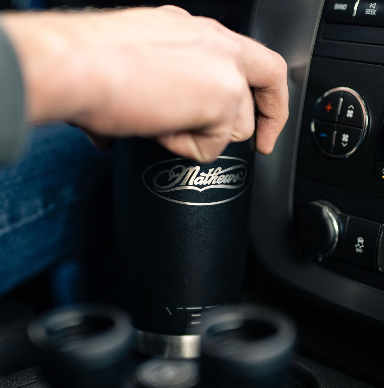 Complete your YETI collection with this custom black DuraCoat™ Rambler® 20 oz. made from durable stainless steel with double-wall vacuum insulation to protect your hot or cold beverage at all costs.
