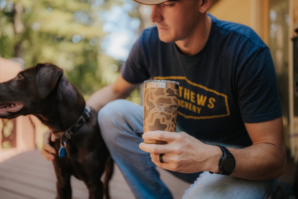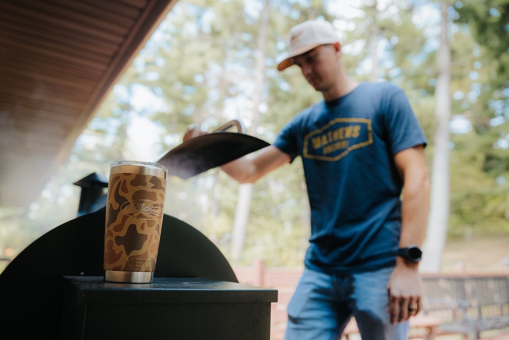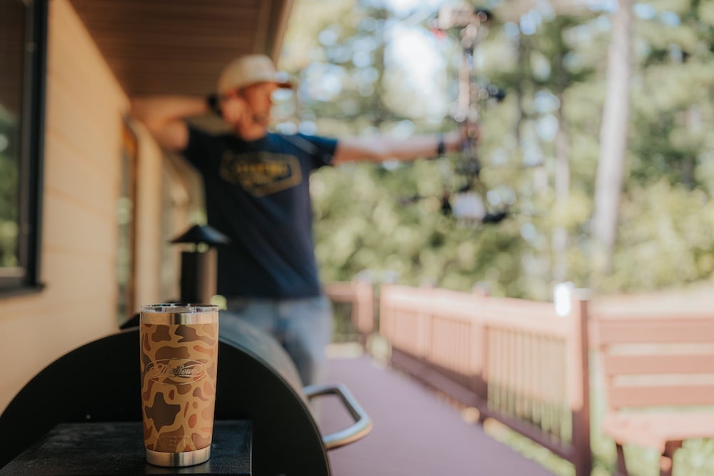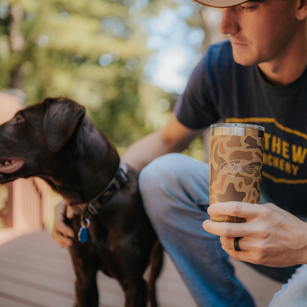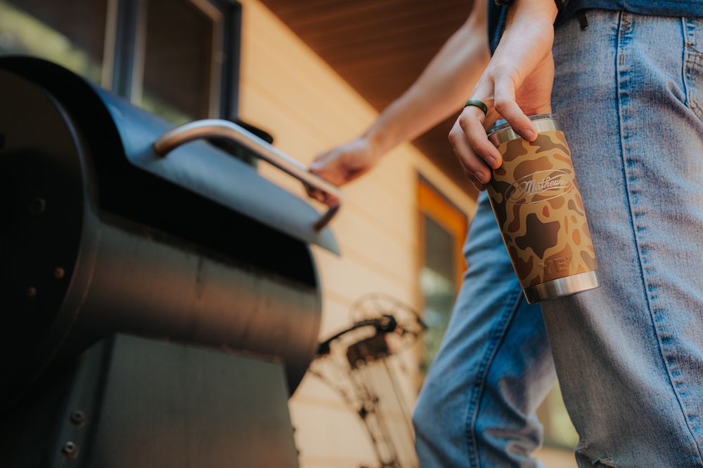 Now for a Limited Time, grab a custom Mathews 20oz DuraCoat™ Rambler® in the popular Wetland Camo finish.
