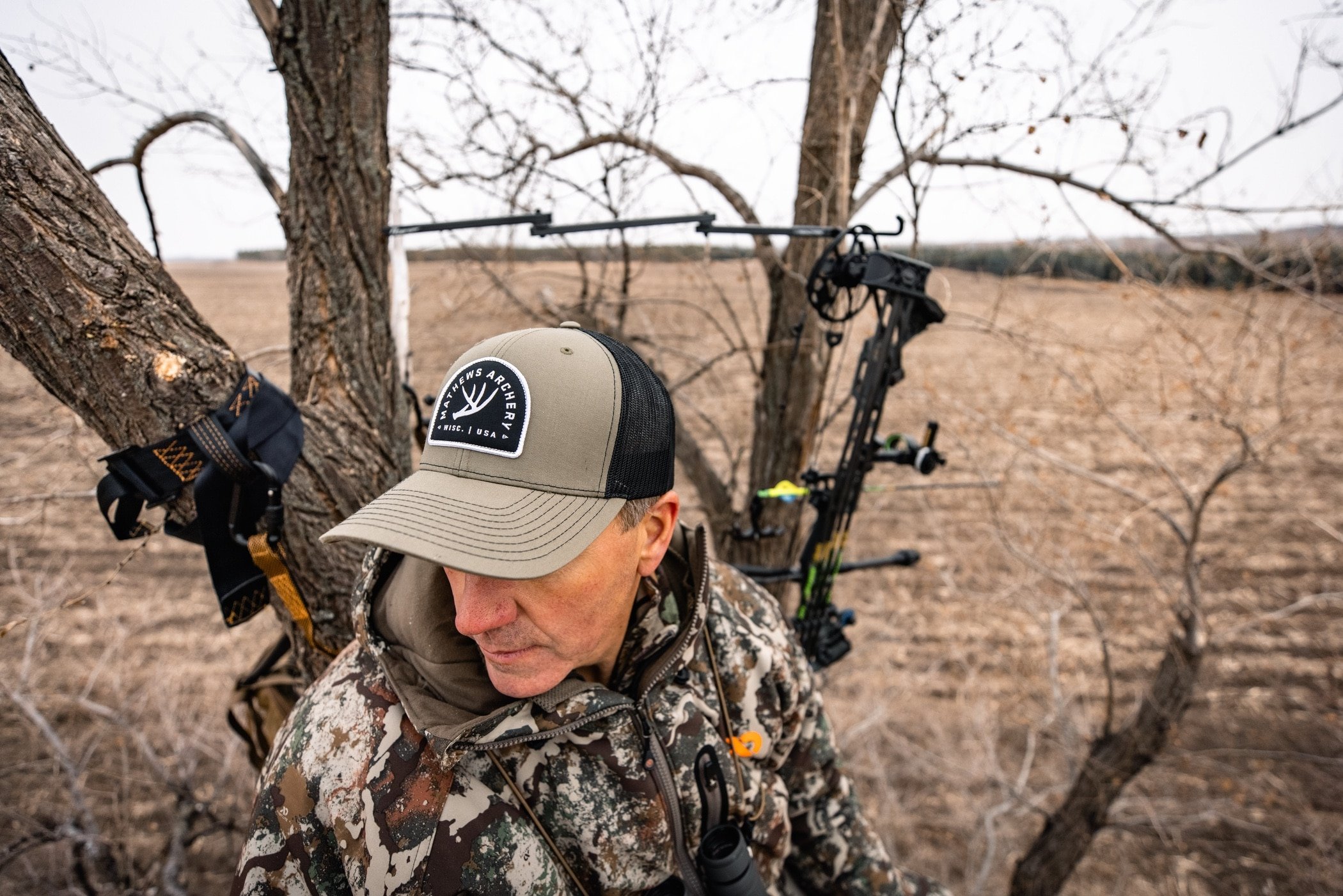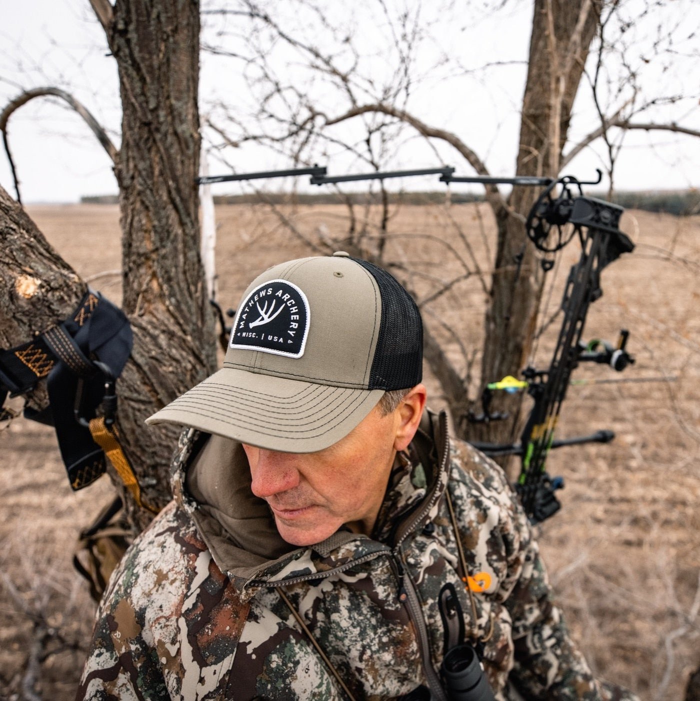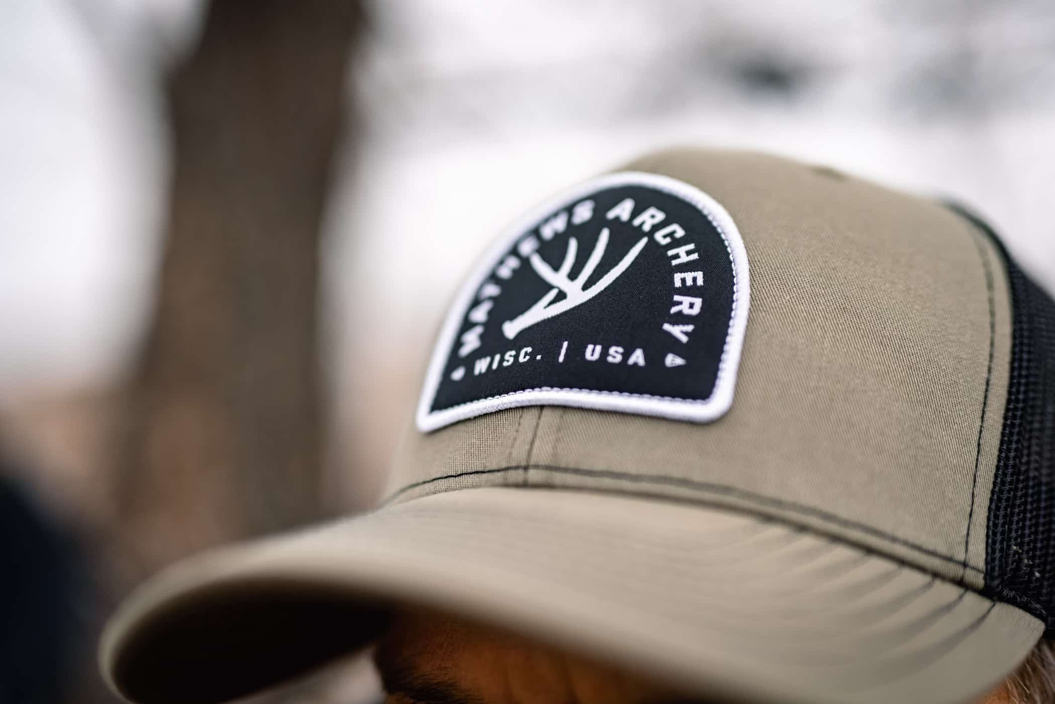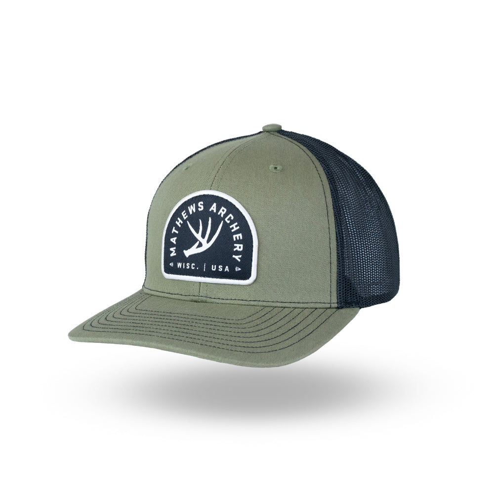 The Antler Cap features a contrasting woven patch with whitetail antler design on the Richardson 112 flat. Also available in stores, check your local Authorized Mathews Retailer for availability.