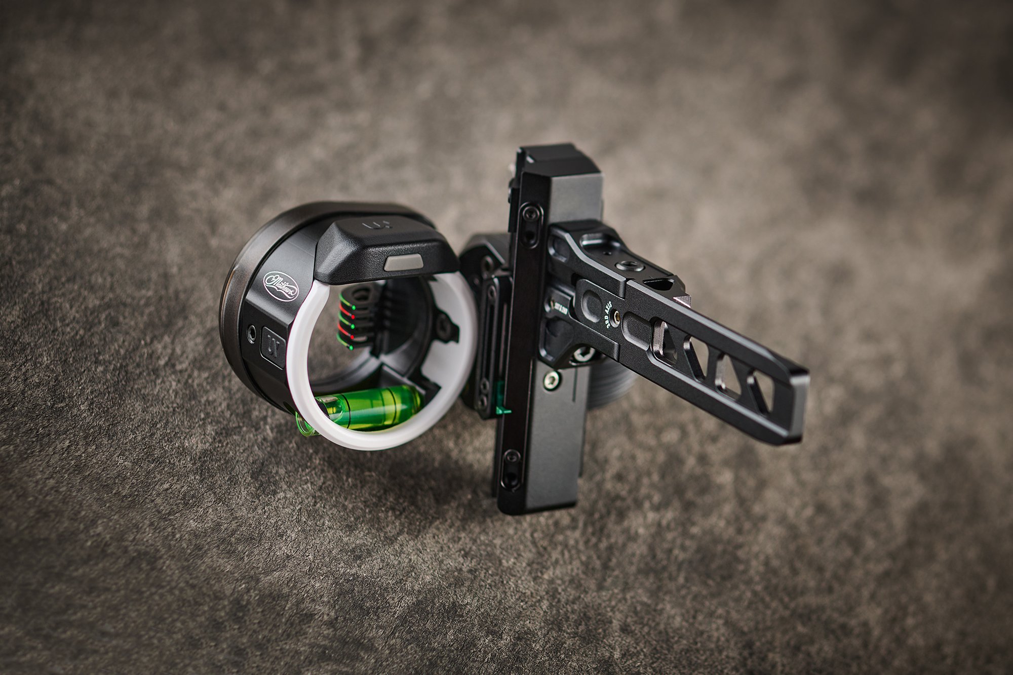 Manufactured in partnership with ULTRAVIEW, the new Mathews Genuine Bridge-Lock UV Slider offers a level of integration into your bow system that cannot be found with any other sight. This lightweight and minimalistic design weighing in at a mere 9 oz. is the lightest fully featured Bridge-Lock sliding sight on the market. Keeping streamlined ergonomics at the heart of this design, ULTRAVIEW’s patent pending DualDial makes this sight the smoothest and most user-friendly sliding sight in high pressure moments. New features include more durable and brighter pins wrapped in an impact resistant shield, a rechargeable and removable lighting system that brings focus to low light situations and HomeStop, a quick return to 20y feature for dynamic moments in the field. Available in three unique pin configurations including a new 5-pin design, this is the best sight ever built to be used on a Mathews.