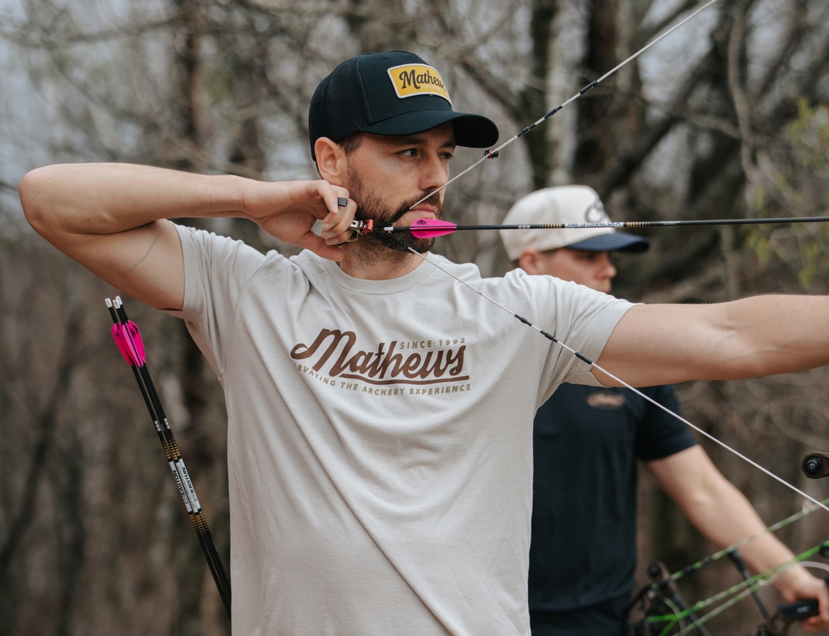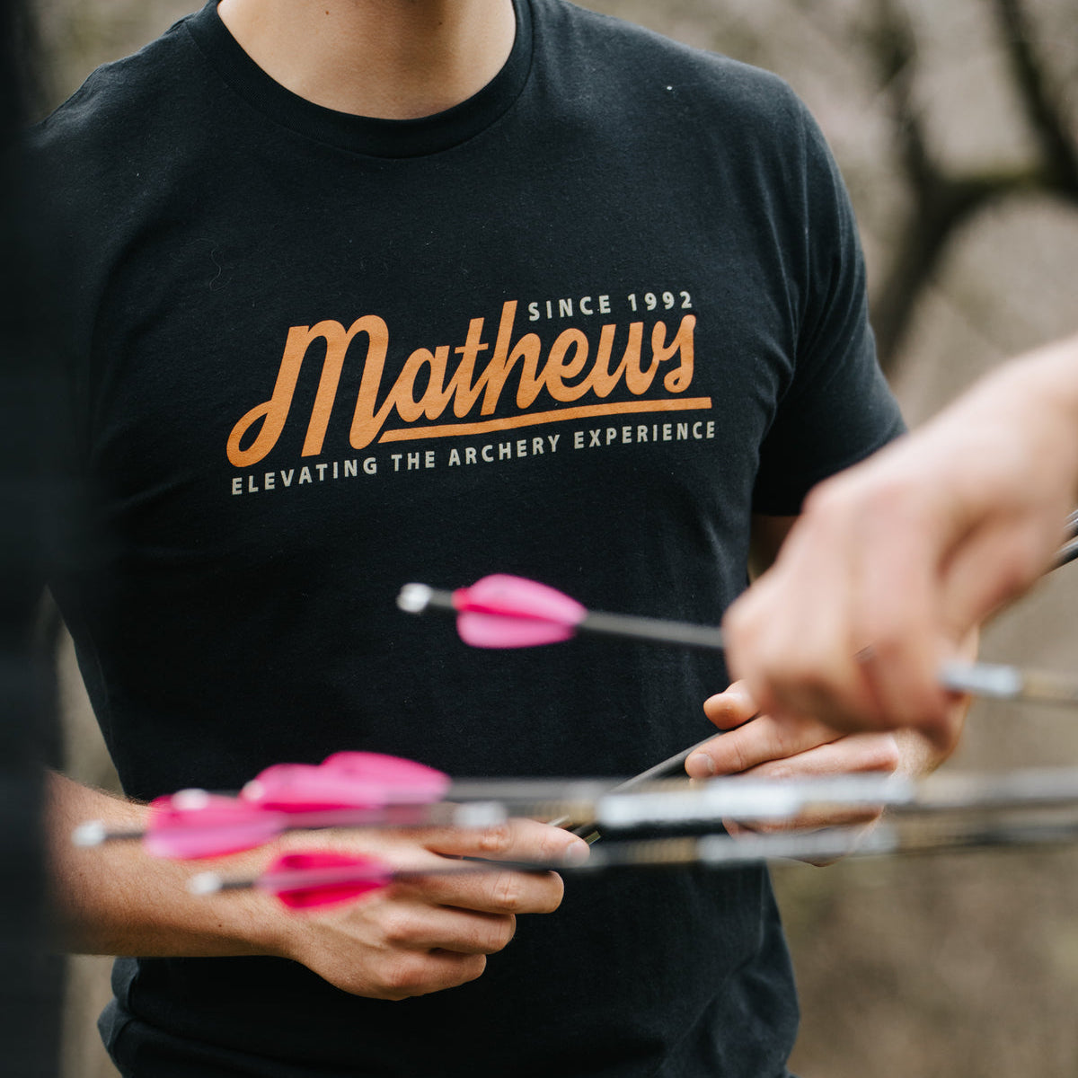 The Crossroad Tee blends classic style with an ultra-soft feel, offering dependable comfort whether you're on the move or taking it easy. Also available in stores, check your local Authorized Mathews Retailer for availability.