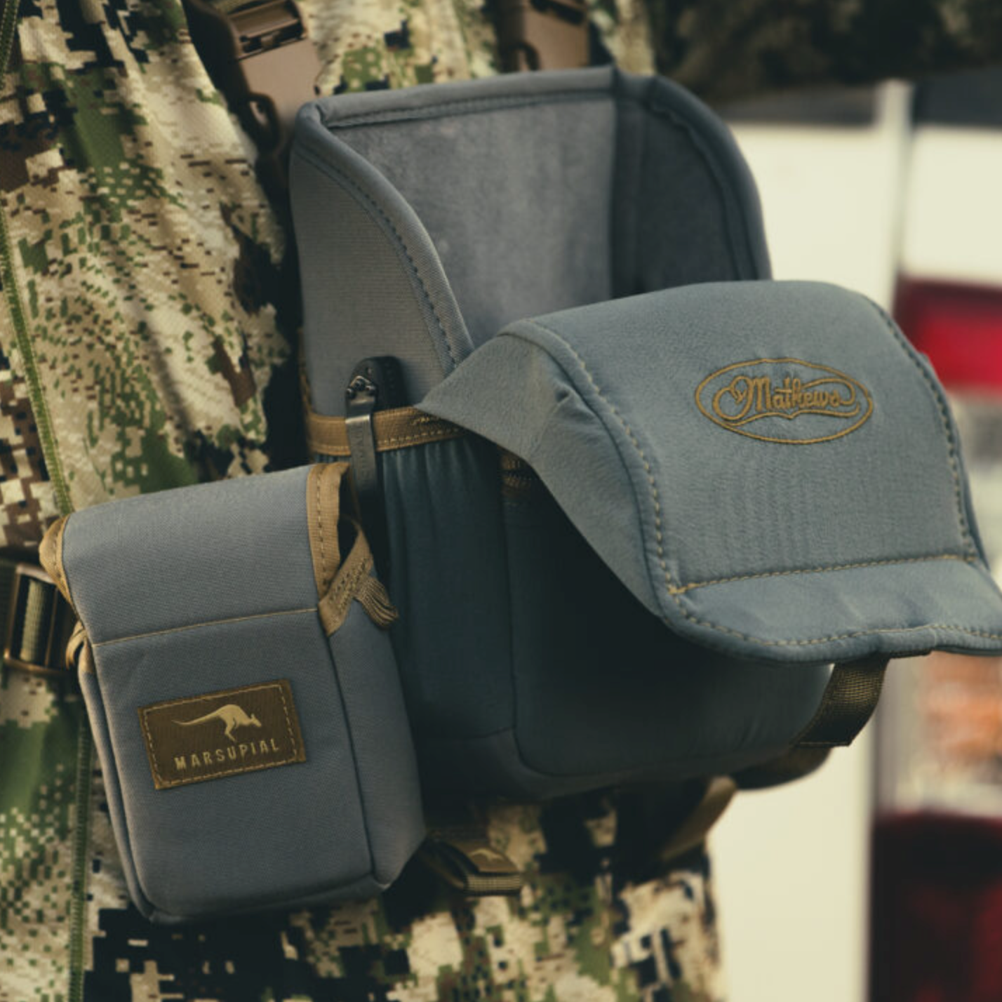 Designed to compliment your binocular harness, the Mathews Marsupial Rangefinder Pouch utilizes a magnetic fold-down lid. Attach it to your Mathews Marsupial Binocular Harness to keep your optics in one place for quick access. The pouch can be attached to any belt or webbing using a snap-release 1″ structured piece of webbing.