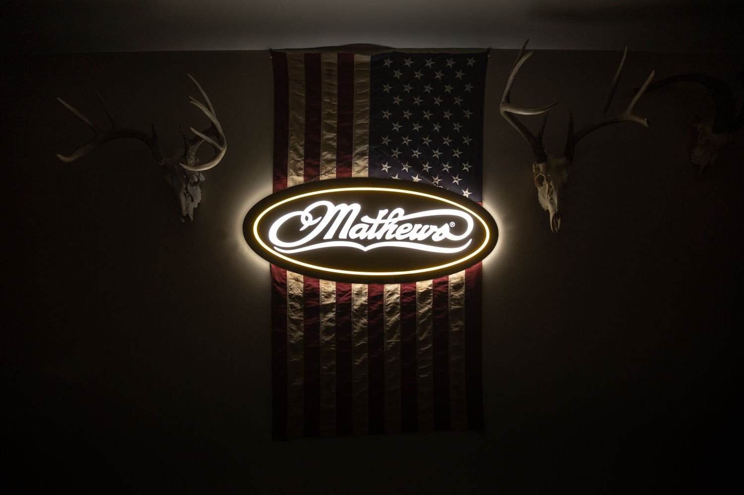 Light it up with the Mathews LED sign. Beveled edges for enhanced glow and vivid contrast between illuminated areas.